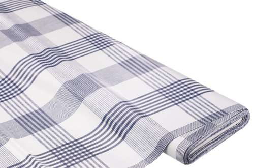 Abwaschbare Tischwäsche/Wachstuch "Karo", Farbe: weiß/blau, Motivgröße einfarbiges weißes Rechteck: 7 x 8 cm, Breite: 140 cm, Gewicht: ca. 310 g/m². Material: Grundmaterial 100 % Polypropylen, Beschichtung 100 % Polyvinylchlorid.