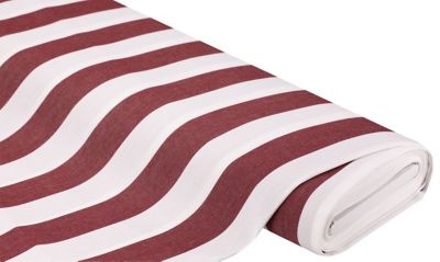 Allround-Gewebe "Madrid" Blockstreifen, Farbe: dunkelrot/weiß, teflonbeschichtet, wasserabweisend, Lichtechtheit: 6, für Sonnensegel, Sonnenschirme, Sitzkissen uvm., Streifen längs verlaufend, Streifenbreite 5 cm, Breite: 160 cm, Gewicht: ca. 240 g/m². Material: 80 % Polyacryl, 20 % Polyester.