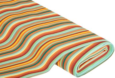 Allround-Gewebe "Madrid", Farbe: kunterbunt, teflonbeschichtet, wasserabweisend, Lichtechtheit: 6, für Sonnensegel, Sonnenschirme, Sitzkissen uvm., Streifen längs verlaufend, Breite: 160 cm, Gewicht: ca. 240 g/m². Material: 80 % Polyacryl, 20 % Polyester.