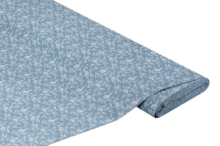 Baumwoll-Trachtenstoff "Blumen", Farbe: himmelblau, Breite: 145 cm, Motivgröße Blume: ca. 2,5 cm, Gewicht: ca. 135 g/m². Material: 100 % Baumwolle.