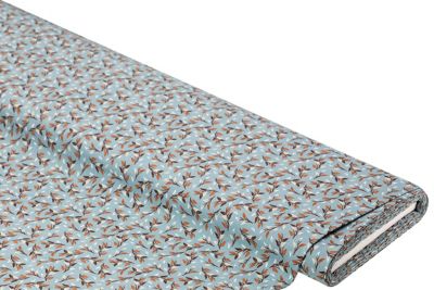 Exklusiv von buttinette: Baumwollstoff "Blätterzweige", Farbe: blau-color, aus der Quiltserie "Mona", aus besonders feiner, weicher und hochveredelter Baumwolle (Renforcé), Motivgröße Zweig: ca. 3 cm lang, Breite: 150 cm, Gewicht: ca. 130 g/m². Material: 100 % Baumwolle.