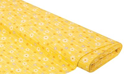Exklusiv von buttinette: Baumwollstoff "Blumen & Linien", Farbe: gelb-color, aus der Quiltserie "Mona", aus besonders feiner, weicher und hochveredelter Baumwolle (Renforcé), Motivgröße Blumen: 6–23 mm, Breite: 150 cm, Gewicht: ca. 130 g/m². Material: 100 % Baumwolle.