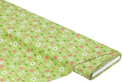 Exklusiv von buttinette: Baumwollstoff "Blumen & Linien", Farbe: grün-color, aus der Quiltserie "Mona", aus besonders feiner, weicher und hochveredelter Baumwolle (Renforcé), Motivgröße Blumen: 6 - 23 mm, Breite: 150 cm, Gewicht: ca. 130 g/m². Material: 100 % Baumwolle.
