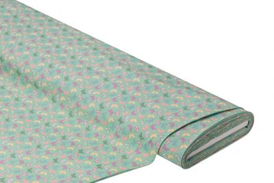Exklusiv von buttinette: Baumwollstoff "Schmetterlinge", Farbe: grün-color, aus der Quiltserie "Dana", in brillantem Digitaldruck, aus weicher Baumwolle, Motivgröße Schmetterling: 1,5 x 1 cm, Breite: 150 cm, Gewicht: ca. 120 g/m². Material: 100 % Baumwolle.