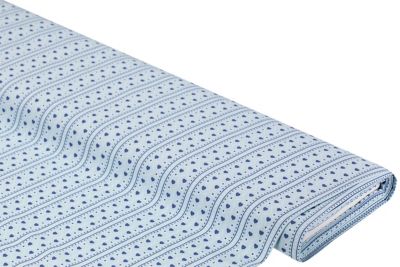 Exklusiv von buttinette: Baumwollstoff "Folklore", Farbe: hellblau/dunkelblau, aus der Quiltserie "Mona", aus besonders feiner, weicher und hochveredelter Baumwolle (Renforcé), Bordürenbreite: 4,5 cm, Breite: 150 cm, Gewicht: ca. 130 g/m². Material: 100 % Baumwolle.