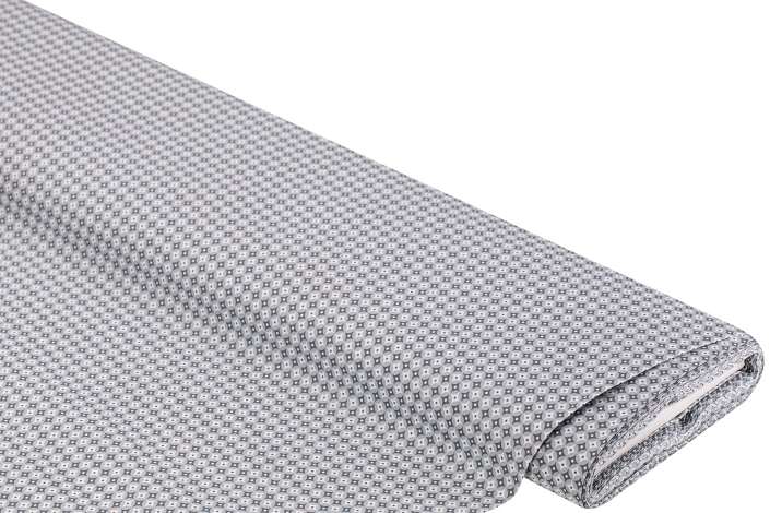 Exklusiv von buttinette: Baumwollstoff "Geometric", Farbe: grau/weiß, aus der Quiltserie "Lena", bedruckt, aus besonders feiner, weicher und hochveredelter Baumwolle (Renforcé), Motivgröße: 1 cm Ø, Breite: 150 cm, Gewicht: ca. 130 g/m². Material: 100 % Baumwolle.