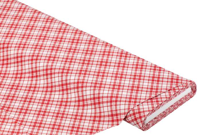 Exklusiv von buttinette: Baumwollstoff "Karo", Farbe: rot-color, aus der Quiltserie Mona, aus besonders feiner, weicher und hochveredelter Baumwolle, Motivgröße graues Karo: 2,5 x 2,5 cm, Breite: 150 cm, Gewicht: ca. 130 g/m². Material: 100 % Baumwolle.