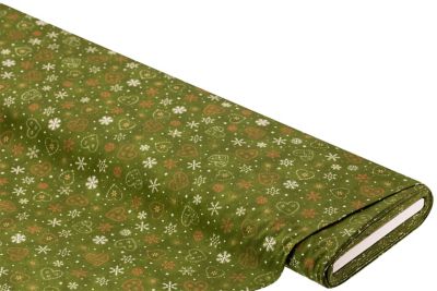 Exklusiv von buttinette: Baumwollstoff "Landhaus-Herzen & -Kristalle", Farbe: grün-color, aus der Quiltserie "Mona", aus besonders feiner, weicher und hochveredelter Baumwolle (Renforcé), Motivgröße großes Herz: ca. 2,5 cm Ø, Breite: 150 cm, Gewicht: ca. 130 g/m². Material: 100 % Baumwolle.