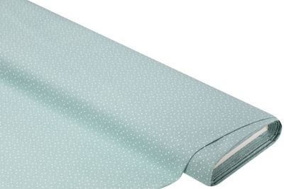 Exklusiv von buttinette: Baumwollstoff "Mini-Sternchen", Farbe: mint-weiß, aus der Quiltserie "Lena", aus besonders feiner, weicher und hochveredelter Baumwolle (Renforcé), Motivgröße Sternchen: 2 x 2 mm, Breite: 150 cm, Gewicht: ca. 130 g/m². Material: 100 % Baumwolle.