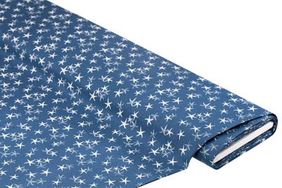 Exklusiv von buttinette: Baumwollstoff "Seestern", Farbe: blau-color, aus der Quiltserie "Lena", aus besonders feiner, weicher und hochveredelter Baumwolle (Renforcé), Motivgröße Seestern: 1,5–2 cm Ø, Breite: 150 cm, Gewicht: ca. 130 g/m². Material: 100 % Baumwolle.