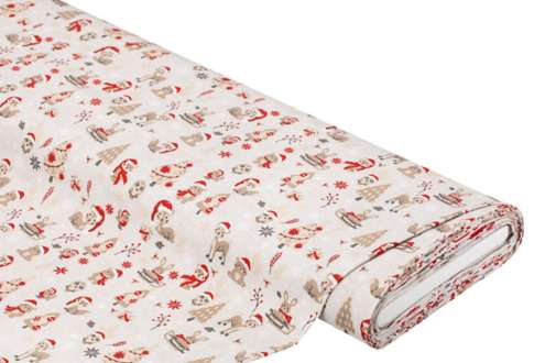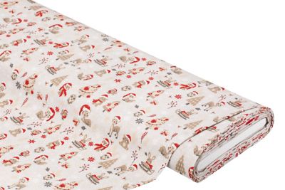 Exklusiv von buttinette: Baumwollstoff "Tiere des Waldes", Farbe: hellgrau-color, aus der Quiltserie "Mona", aus besonders feiner, weicher und hochveredelter Baumwolle (Renforcé), Motivgröße Bär: 2 x 3,5 cm, Breite: 150 cm, Gewicht: ca. 130 g/m². Material: 100 % Baumwolle.