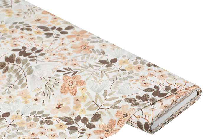 Beschichtetes Baumwollmischgewebe "Blumen & Blätter", apricot-color