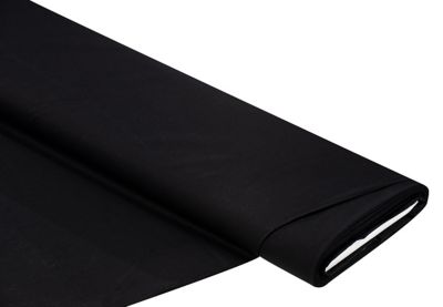 Bio-Baumwollstoff Uni, Farbe: schwarz, durchgefärbt, Breite: 150 cm, Gewicht: ca. 140 g/m². Einlaufwerte: ca. 3-5 % in Breite und Länge. Material: 100 % Baumwolle.