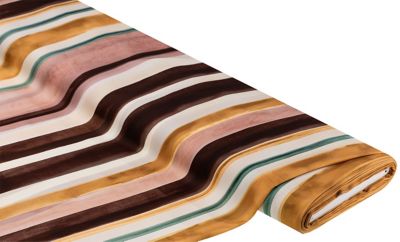 Blusen-Satin "Streifen", Farbe: mauve/braun/creme, Streifen längs verlaufend, Streifenbreite schmal: 13 mm, Breite: 140 cm, Gewicht: ca. 80 g/m². Material: 100 % Polyester.