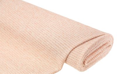 Bouclé "Streifen" mit Glitzer, Farbe: lachs-wollweiß, querelastisch, Streifen querverlaufend, Streifenbreite: 5 mm, Breite: 150 cm, Gewicht: ca. 275 g/m². Material: 100 % Polyester.
