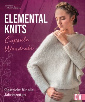 "Elemental Knits - Capsule Wardrobe". Gestrickt für alle Jahreszeiten! Mit dem Fokus auf vielseitige Alltags-Looks finden Sie 20 schlichte Strickprojekte mit dem gewissen Etwas! Ideal zum kombinieren mit der bestehenden Garderobe und für jede Jahreszeit passende Modelle! Buch mit 160 Seiten. Größe: 22,5 x 27 cm.