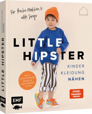 "Little Hipster: Kinderkleidung nähen". 15 tolle Schnittmuster in den Größen 74–140. Stylische Designs aus Baumwolle, Jersey, Musselin und Co. – so macht Kindermode Spaß! Einfach zu nähende, praktische Modelle wie hippe Hemdchen, coole Hosen und freche Jäckchen, wärmende Caps – auch für Näheinsteiger geeignet. Inkl. Schnittmusterbogen. Buch mit 144 Seiten. Größe: 20,5 x 24 cm.