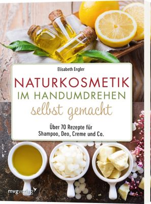 "Naturkosmetik im Handumdrehen selbst gemacht". Sanfte Pflege für Haut und Haar – nachhaltig, natürlich und hausgemacht! Ganz ohne Vorkenntnisse können Sie hautpflegende Gesichtsmasken, Gesichtswasser, Naturdeos, Körperbutter, Peelings, Badebomben und vieles mehr im Handumdrehen selbst herstellen. Natürliche Inhaltsstoffe schonen Haut und Geldbeutel gleichzeitig. Buch mit 112 Seiten. Größe: 17 x 24 cm.