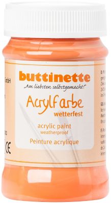 Wetterfeste buttinette Acrylfarbe, zum Grundieren und Bemalen von Holz, Terrakotta, Zink, Styropor usw., hochdeckend, wasserverdünnbar, Farben können miteinander vermischt werden, für den Außenbereich geeignet. Inhalt: 100 ml.