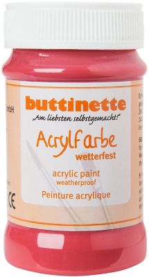 Wetterfeste buttinette Acrylfarbe, zum Grundieren und Bemalen von Holz, Terrakotta, Zink, Styropor usw., hochdeckend, wasserverdünnbar, Farben können miteinander vermischt werden, für den Außenbereich geeignet. Inhalt: 100 ml.