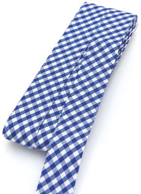 buttinette Baumwoll-Schrägband "Vichykaro", Farbe: blau-weiß, Breite: 2 cm, von 4 cm auf 2 cm vorgefalzt, Länge: 5 m. Material: 100 % Baumwolle.