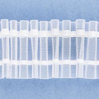 buttinette Faltenband, universal, mit zwei Zugfäden und einer Schlaufenreihe für Gardinenhaken, Farbe: transparent, Breite: 5 cm, Länge: 10 m. Material: 100 % Polyester.