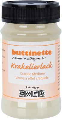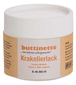 buttinette Krakelierlack, zur Gestaltung von Krakeliereffekten auf verschiedensten Farben. Nicht für Metallic-Farben geeignet. Inhalt: 100 ml.