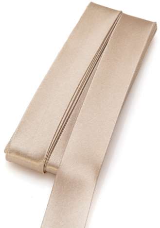 buttinette Satin-Schrägband, Farbe: beige, Breite: 2 cm, von 4 cm auf 2 cm vorgefalzt, Länge: 5 m. Material: 100 % Polyester.