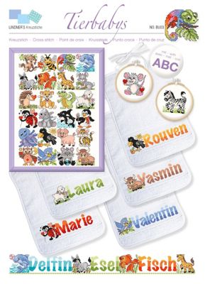 buttinette Stickvorlage "Tierbabys". Hier finden Sie kindliche Tiermotive für zahlreiche Kombinationsmöglichkeiten. Wählen Sie das jeweils passende Tier zum Anfangsbuchstaben oder mixen Sie individuell. Ob Kuschelkissen, das mit Namen bestickte Lätzchen oder ein Kuscheltuch, mit diesen unvergesslichen Erinnerungsstücke für Ihr eigenes Kind oder als Geschenk schenken Sie auf alle Freude. Bogen mit 6 Seiten, inkl. Grundanleitung und farbiger Zählvorlage. Größe: 21 x 29,5 cm.