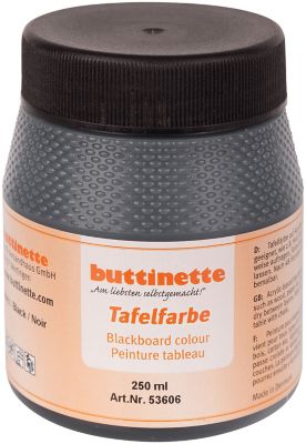 buttinette Tafelfarbe schwarz, auf Acrylbasis für sämtliche Untergründe geeignet, wie z. B. Holz, Karton, Keilrahmen etc., mit Kreide und Kreidemarker beschreibbar und wieder abwischbar, 100 ml sind ausreichend für ca. 0,6 - 0,8 m².