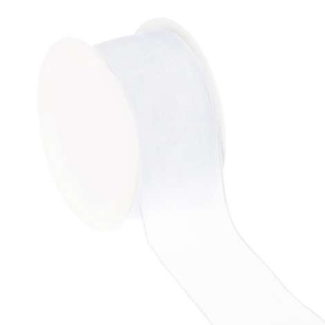 Chiffonband mit Drahtkante, Farbe: weiß, Breite: 40 mm, 10 m pro Rolle. Material: 100 % Polyester.