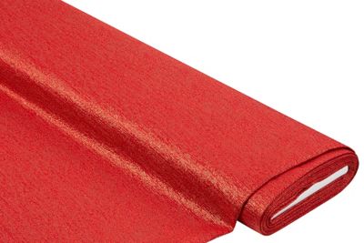 Dekostoff mit Glitzer, Farbe: rot/gold, Breite: 150 cm, Gewicht: ca. 135 g/m². Einlaufwert: ca. 1 % in Länge und Breite. Material: 90 % Polyester, 10 % Metallfasern.