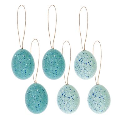 Echte Ostereier, Farbe: petrol, mit weiß-blauen Sprenkeln, Größe: 6 cm, Inhalt: 6 Stück.
