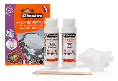 Epoxidharz, transparentes Einschlussharz für eine Schichtdicke zwischen 4 mm und 10 mm. Inhalt: Harz, Härter, Handschuhe, Mischbecher, Holzstäbchen und Pipette.