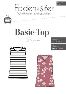 Fadenkäfer Schnitt "Basic-Top" für Damen, Anleitung für 2 Modelle, Größe 32–58, Schwierigkeitsstufe: leicht, Stoffempfehlung: Jersey, Bündchenware.