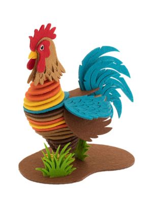 Bausatz "Hahn" aus Filz, zum Basteln eines Deko Hahns in der Größe 20,5 cm, Inhalt: Filz-Stanzteile, Holzstäbe und eine Anleitung. Material: 100 % Polyester. Nur für Dekorationszwecke geeignet.