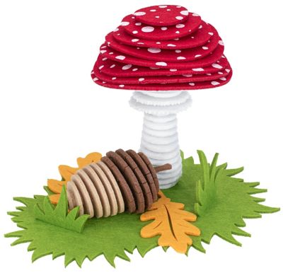 Bausatz "Pilz & Eichel" aus Filz, zum Basteln eines Deko Pilzes mit Eichel in der Größe 16 cm, Inhalt: Filz-Stanzteile, Holzstäbe und eine Anleitung. Material: 100 % Polyester. Nur für Dekorationszwecke geeignet.