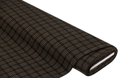 Flanell "Karo", Farbe: braun/schwarz, bi-elastisch, Motivgröße schwarzes Karo: 10 x 12 mm, Breite: 150 cm, Gewicht: ca. 280 g/m². Material: 95 % Polyester, 5 % Elasthan.