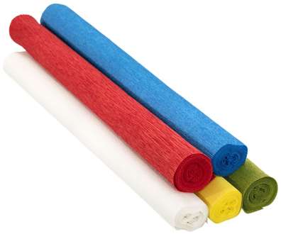 Floristen-Krepp-Papier, Dehnungsgrad 250 %, 5-farbig sortiert, Größe je Farbe 50 cm x 2,5 m, Gewicht: 128 g/m², Inhalt: 5 Rollen.