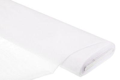 Gardinenstoff, Farbe: weiß, transparent, Lichtechtheit: 4–5, Breite: 150 cm, Gewicht: ca. 75 g/m². Material: 100 % Polyester.