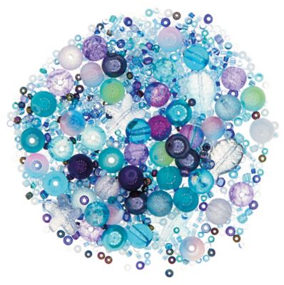Glasperlenmix "Meer" mit Rocailles, Rundperlen, Fischen und Seesternen, Farbe: blau-lila, Größe: 2–15 mm, Inhalt: 45 g = ca. 450 Stück.
