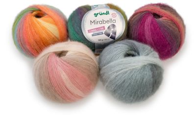 gründl Mirabella. Ein wunderschöner Name für eine wunderschöne Wolle! Lassen Sie sich von dem kuscheligen Wollmischgarn mit angerauter Oberfläche verwöhnen – beim Handarbeiten und beim Tragen! Dank der fülligen und leichten Struktur ist der Materialverbrauch gering; so lassen sich aus einem Knäuel ein kleines Tuch stricken, aus zwei Knäueln sogar ein großes Tuch, dessen kostenlose Anleitung Sie in der Banderole finden. Aber auch für feine Strickpullover, luftige Cardigans und leichte Mützen ist das weiche, leichte, flauschige und hautsympathische Garn bestens geeignet. Haben Sie schon Ihre Lieblingsfarbe bei den tollen Farbverläufen entdeckt? Sie sind in sich harmonisch aufeinander abgestimmt und decken alle Facetten ab – von dezent bis fröhlich bunt!