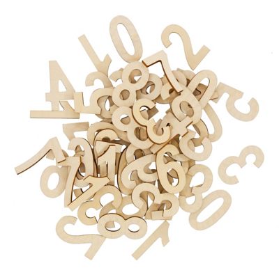 Zahlen aus Holz, von 0–9, Farbe: natur, Höhe: 5 cm, Stärke: 2 mm, Inhalt: je Ziffer 5 Stück = 50 Stück.
