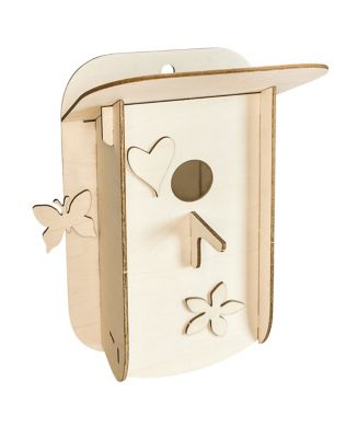 Holzbausatz Nistkasten, Größe: 14,5 x 21 cm, Inhalt: 19 Teile. Mit abnehmbaren Deckel zum Reinigen des Nistkastens. Vorgestanzte Einzelteile ausbrechen, zusammenpuzzlen, anmalen - fertig!