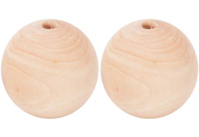 Holzkugeln, geschliffen und poliert, durchgebohrt, Farbe: natur, Größe: 60 mm Ø, Größe Lochbohrung: ca. 4 mm Ø , Inhalt: 2 Stück.