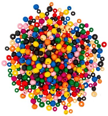 Holzperlen-Mix, Farbe: bunt gemischt, Größe: 6 - 8 mm Ø, Lochdurchmesser: 1 - 3 mm, Inhalt: 50 g = ca. 340 Stück.