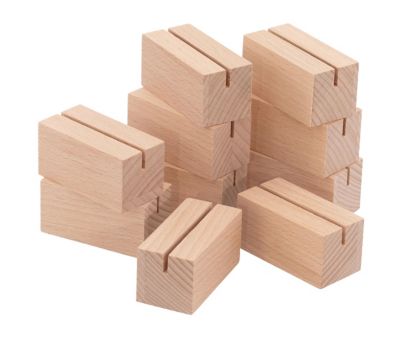 Kartenhalter aus Buchenholz, ideal geeignet zum Aufstellen von Tischkarten, Menükarten oder Namensschilder, Farbe: natur, Größe: 6 x 3 x 3 cm, Größe Schlitz: 2,5 x 10 mm, Inhalt: 10 Stück.