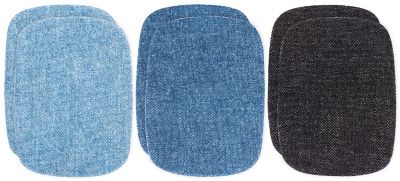 Kleiber Jeans-Flicken Mini zum Aufbügeln, Größe: 9 x 7,5 cm, Farbe: hellblau-meliert, jeansblau-meliert, schwarz-meliert, Inhalt: 3 Paar (je Farbe 1 Paar). Material: 100 % Baumwolle.