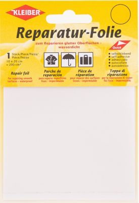 Kleiber Reparatur-Folie zum Reparieren glatter Oberflächen, wasserdicht, transparent, Größe: 10 x 20 cm. Material: 100 % Polyester-PU.