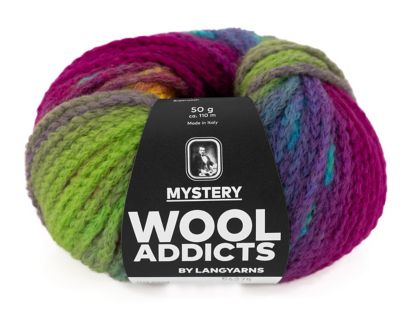 Lang Yarns WOOLADDICTS Mystery. Mystisch schön kommt das Schnellstrickgarn Mystery aus dem modisch jungen Label WOOLADDICTS von Lang Yarns daher. Wie alle anderen Garne aus dieser Serie richtet es sich nach den aktuellen Trends und setzt farbenfrohe, moderne Akzente in Ihrer Garderobe. Doch nicht nur diese bezaubernde Optik macht das Stricken zu einem echten Vergnügen, sondern auch die unglaublich angenehme Haptik: Mit 92 % extrafeinem Merinowollanteil werden Sie von Ihren neuen DIY-Strickstücke wie Pullovern, Schals, Mützen und Co. kuschelweich umgarnt. Sie werden sie lieben und zu absoluten Lieblingsteilen erklären; nur gut, dass das Garn mit Superwash-Ausrüstung ausgestattet ist und Sie es deshalb ganz mühelos pflegen können!